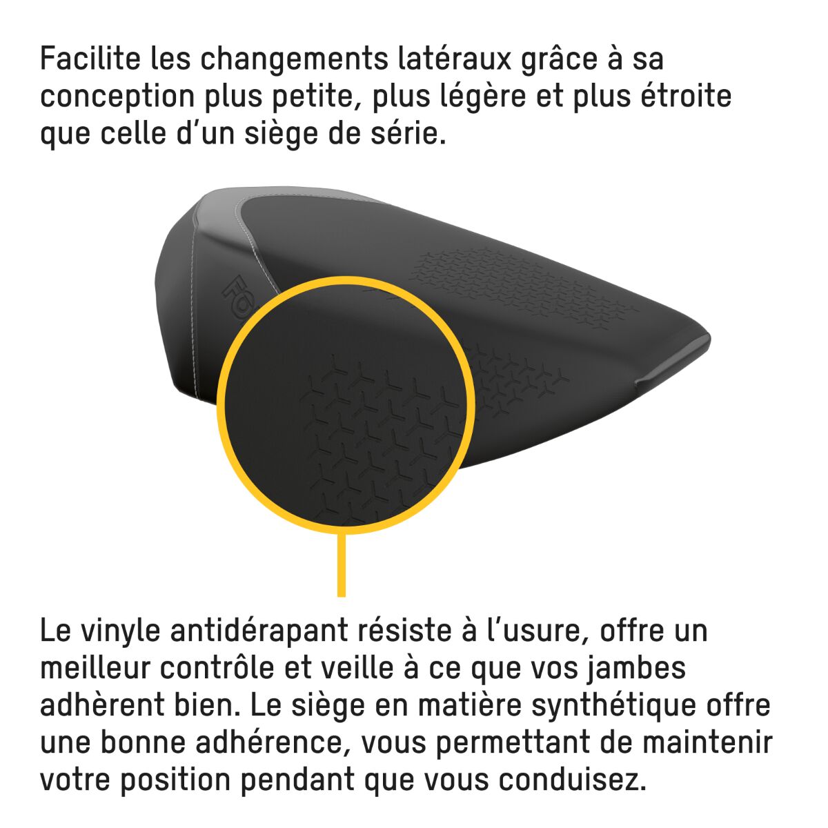 Développé par l’expert hors-piste bien connu Carl Kuster, le siège compact pour hors-piste de Ski-Doo vous procure encore plus de liberté de mouvement pour la conduite en terrain accidenté. Possédant des zones de prise intégrées, ce siège de motoneige est plus bas, étroit et léger que le siège Summit de série. Il est compatible avec la plateforme REV Gen4. Développé par l’expert hors-piste Carl Kuster. Procure encore plus de liberté de mouvement. Plus bas, étroit et léger que le siège Summit Adrenaline de série. De série sur Freeride et Summit (sauf Summit Adrenaline et Summit X avec ensemble expert). Zones de prise intégrées. Hauteur de 125 mm (5 po).