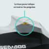 Protégez votre motomarine durant le transport et le remisage avec cette bâche de remorquage à l’épreuve des intempéries. Fabriquée en toile robuste de polyester teintée dans la masse et résistante aux rayons UV, cette bâche de motomarine offre une protection solide contre les éléments. La doublure intérieure douce évite les éraflures, conservant ainsi l’état impeccable de votre motomarine GTX S ou GTX Limited S. Un beau tissu jaune indique les zones clés, et des ouvertures à glissière offrent un accès rapide aux taquets d’amarrage. Renforcée d’une double couche de toile dans les zones à forte abrasion, cette bâche Sea-Doo est conçue pour durer. Bâches à l’épreuve des intempéries pour protéger votre motomarine durant le transport et le remisage. Toile robuste en polyester teinte en solution et résistante aux rayons UV. Le tissu jaune indique où insérer les poignées. Ouvertures à glissière pour un accès facile aux taquets lors de l’amarrage. Les zones à forte abrasion sont renforcées d’une double couche de toile. Conçues pour s’adapter parfaitement à votre véhicule avec ou sans accessoires Sea-Doo. Crochets latéraux pour maintenir la bâche en place lors du remorquage. Système d’évacuation d’air breveté pour maintenir la bâche en place lors du remorquage. De série sur les modèles GTX Ltd.