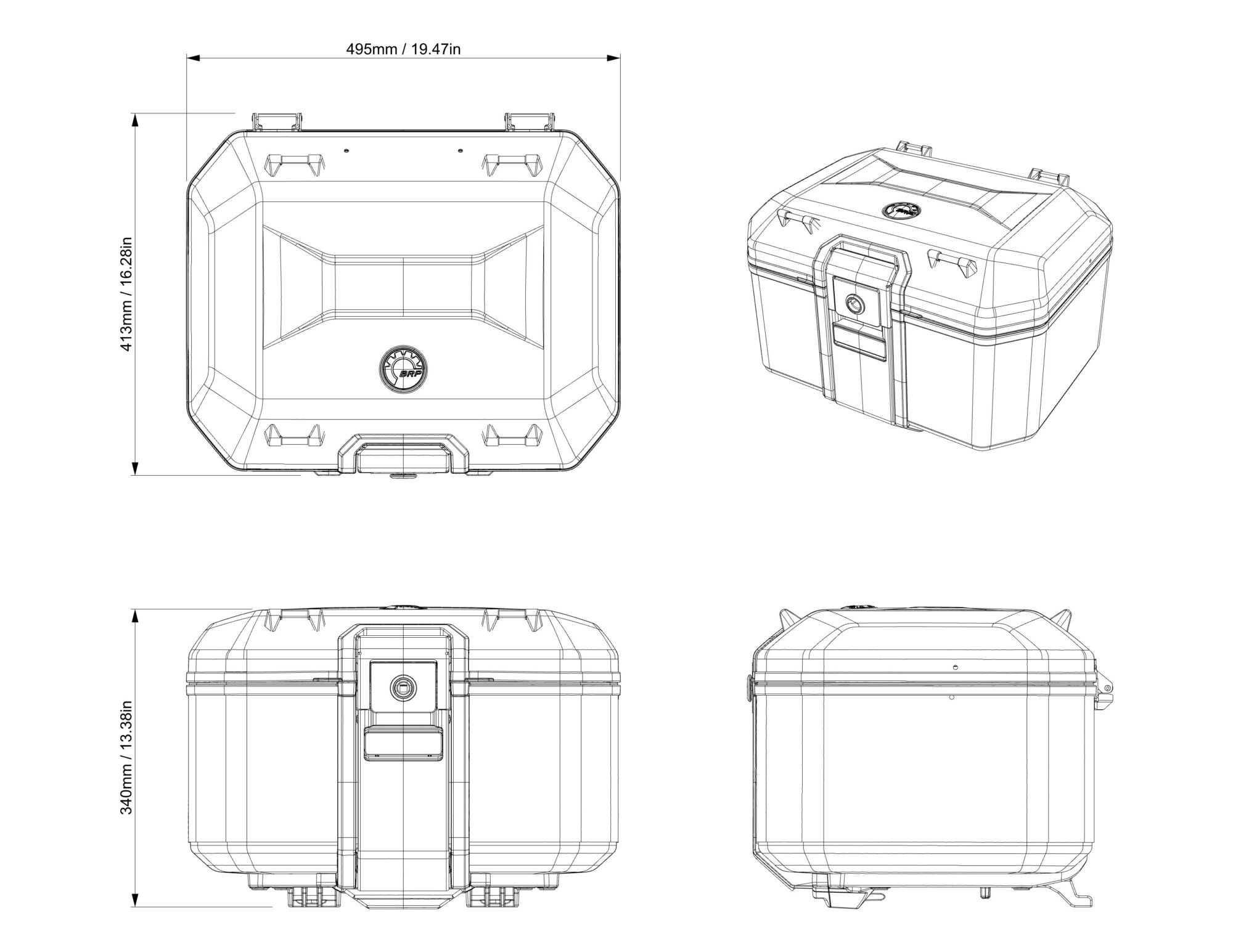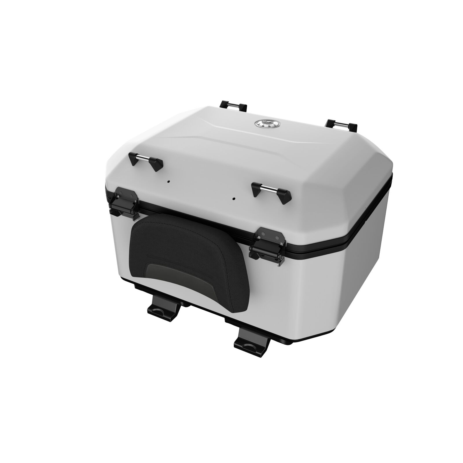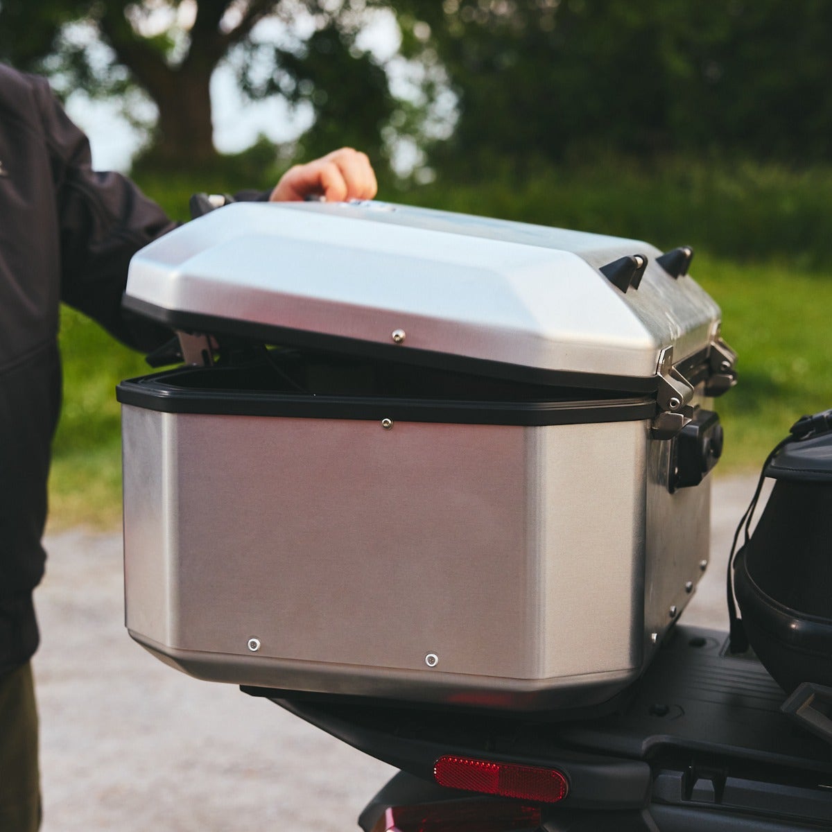 Boîtier supérieur de première qualité robuste en aluminium. Capacité de 48 litres. Installation facile et rapide. Verrouillable à l’avant (les clés sont fournies avec le véhicule). Aucun support supplémentaire nécessaire. Compatible avec le siège passager et les Valises latérales en aluminium (219401282). Comprends un petit dossier passager de conception ergonomique, conçu pour améliorer le confort lors de vos sorties.
