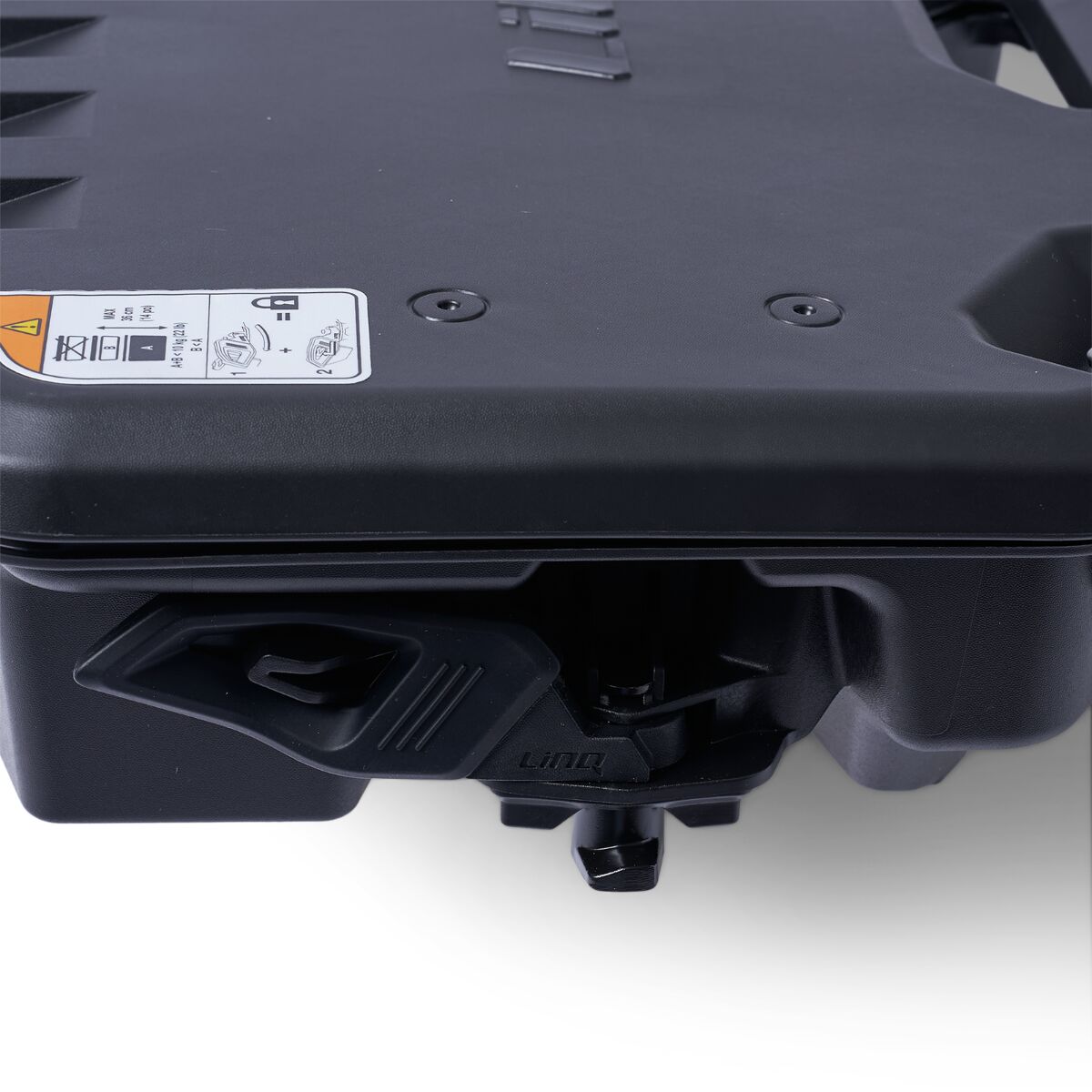 Comprend : Pinces coupantes Pinces à long bec Pinces étau Clé à cliquet 3/8 po Extension de cliquet 6 po Douille longue 19 mm 3/8 po – 6pts Douille 18 mm 3/8 po Douille longue 17 mm 3/8 po – 6pts Douille 15 mm 3/8 po Douille 13 mm 3/8 po Douille 10 mm 3/8 po Douille 8 mm 3/8 po Clé combiné 19 mm Clé combiné 18 mm Clé combiné 15 mm Clé combiné 13 mm Clé combiné 10 mm Clé combiné 8 mm Douille torx t40 3/8 po Douille torx t30 3/8 po Douille torx t20 3/8 po Bar de force 3/8 po Espace de rangement intégré pour courroie d’entraînement (courroie non incluse) Vous pouvez laisser les accessoires LinQ sur le véhicule en toute sécurité grâce au verrou LinQ (860201968).