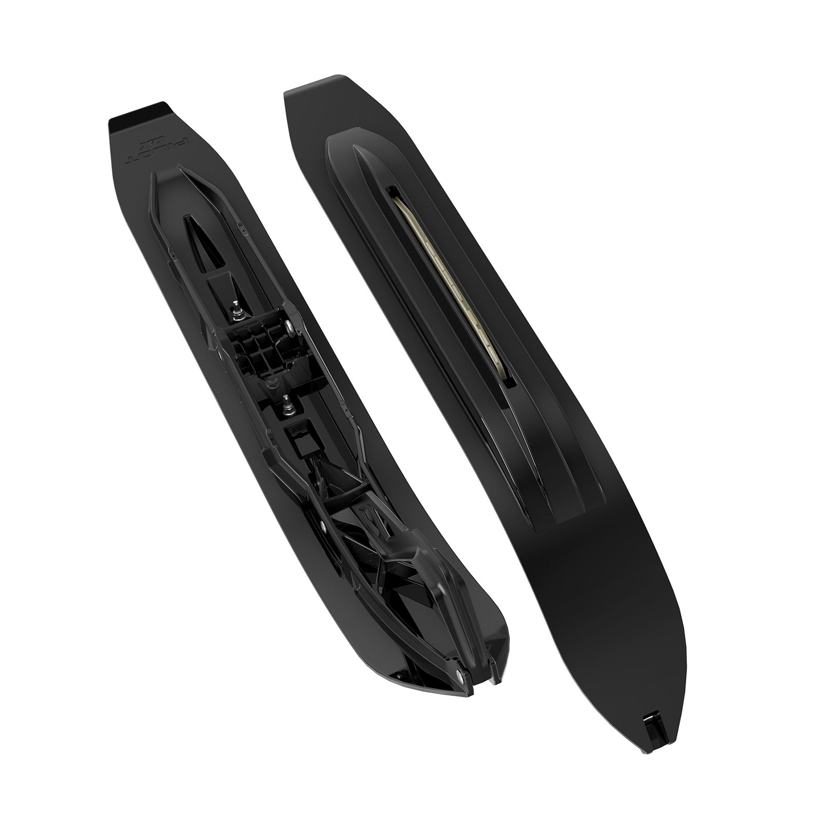 Remarkable cornering predictability in various snow condition and exceptional control in loose snow. 1st Keel : Positive bite on hard packed trail. 2nd keel : Improved grip in softer snow conditions. 47 mm total vertical wall in loose snow with 645 mm long keel. 250 cm2 of lateral area. 160 m wide for great flotation on soft snow. Complete kit including 2 Pilot RX ski assemblies with pre-installed handles, 2 carbides and all required hardware.