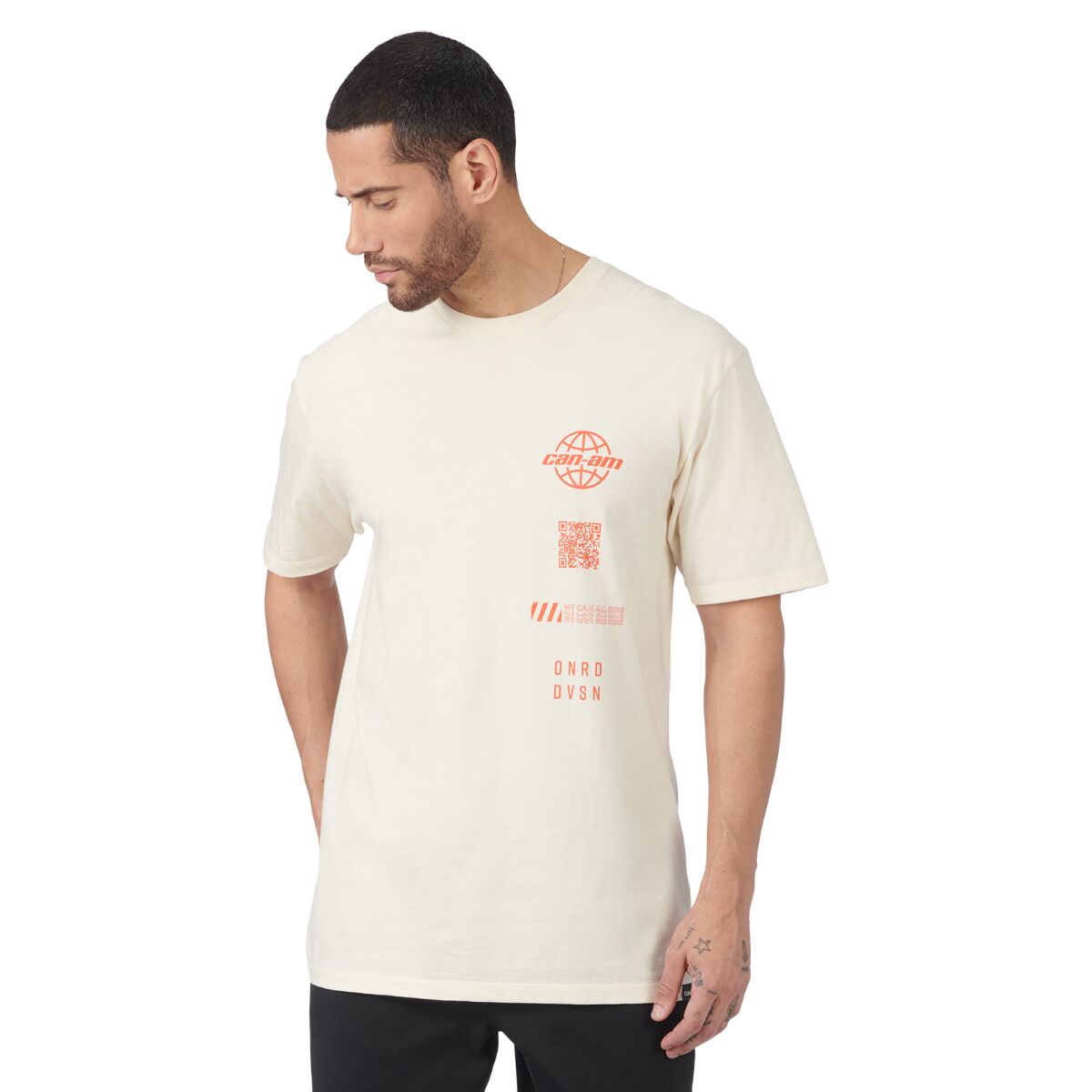 Si vous préférez être sur la route, montrez-le au monde entier en portant le t-shirt Can-Am Kyle pour hommes. Ce t-shirt en mélange de coton doux est parfait pour un port quotidien grâce à sa sensation de coton doux, sa coupe régulière confortable avec une encolure ras du cou et ses imprimés graphiques au niveau de la poitrine et au dos. Agencez-le à un jean, à un pantalon de jogging ou à un short pour une allure classique décontractée pour le travail ou les loisirs. Logos à l’avant. Illustration graphique à l’arrière. Détail code QR sur le TShirt.