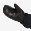Isolant en plume d’oie éthique Entre-doublure imperméable, respirante et résistante au vent Doublure en laine naturellement respirante et antimicrobienne Paumes et doigts renforcés en cuir Propriétés tactiles à l’index Essuie-nez au pouce