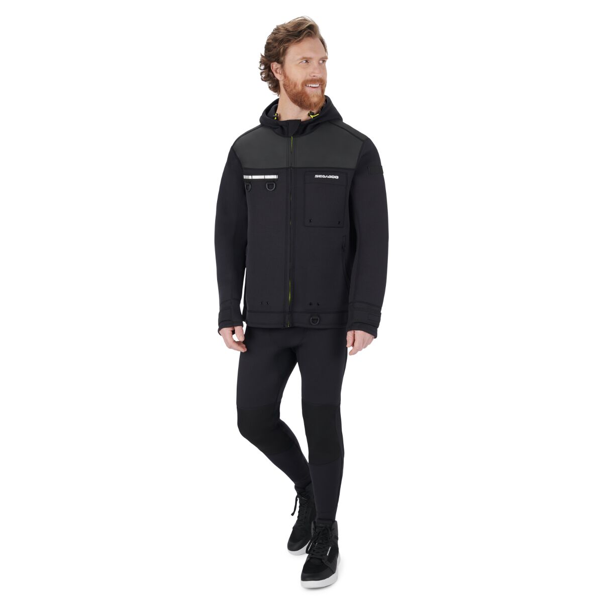 Les vagues vous appellent. Suivez-les dans ce manteau de conduite Sea-Doo Explorer pour hommes. Ce manteau facile à superposer est doté d’un capuchon ample ajustable et d’une bande velcro réglable aux poignets pour un ajustement parfait qui n’entrave pas vos mouvements. Un mélange de néoprène et de nylon offre une protection contre les éléments, tandis que des détails, comme une fente centrale à l’arrière, facilitent les mouvements. Les poches à usages multiples avec sangle ajoutent beaucoup de rangement sécuritaire et intelligent vous permettant de transporter vos articles essentiels. 90 % néoprène, 10 % nylon. Glideskin Néoprène 3 mm aux épaules pour protéger contre les éléments. Ample. À porter par-dessus la VFI. Fente au milieu du dos pour faciliter le mouvement. Poches multi-usages avec sangles, détails réfléchissante et anneau en D. Capuchon ajustable et poignets ajustables par velcro. Fermeture à glissière avant à verrouillage automatique YKK durable. Boucle pour clé dans la poche droite.