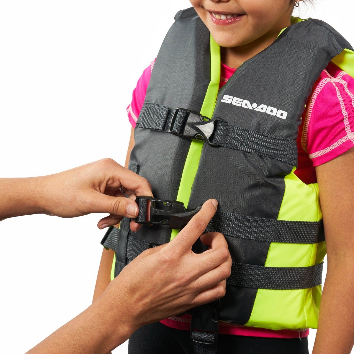 C’est le moment de s’amuser au soleil? Protégez votre enfant lorsqu’il est au bord de l’eau ou lorsque vous naviguez en bateau avec le gilet de sauvetage VFI Sea-Doo Sandsea pour enfants. Les insertions de mousse en polyéthylène sont enveloppées dans une coquille en polyester durable assurant à votre enfant une protection longue durée. Les grandes emmanchures permettent aux petits de bouger librement pendant qu’ils jouent. Soyez tranquille en sachant que cette VFI est approuvée par la garde côtière. Certifiée pour une utilisation générale lors de la navigation de plaisance, et non pas comme gilet de sauvetage sur une motomarine. Remarque : La taille Grand n’est pas dotée d’une sangle entre les jambes. Matériel en Polyester très résistant. Insertions de mousse de polyéthylène. Grandes emmanchures offrant plus de confort. La veste de taille petite est offerte avec un coussinet derrière la nuque Approuvée par la garde côtière et certifiée pour les embarcations de plaisance, sauf motomarines. Coquille: 100% polyester Isolation: 100% polyéthylène extensible