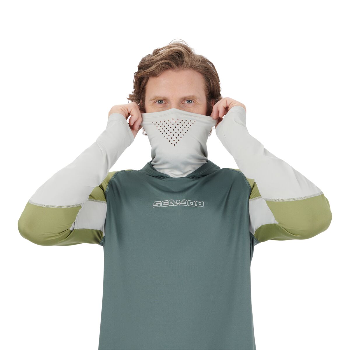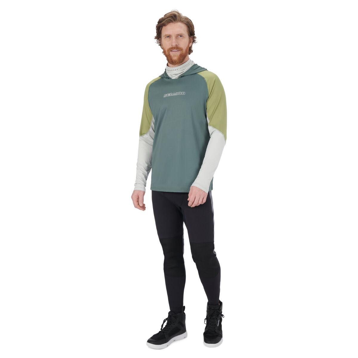 Affrontez les vagues sans vous soucier des dommages causés par le soleil ou les frottements avec ce chandail à capuchon haut de gamme avec protection UV Sea-Doo pour hommes. Sa protection FPU 50 UV protège votre peau et s’accompagne d’un mélange polyester et élastane rafraîchissant à séchage rapide. Le capuchon et le masque intégré au collet ajoutent une couche de protection supplémentaire, tandis que la coupe ample vous permet de bouger librement. Le logo Sea-Doo au centre de la poitrine complète le look de ce chandail haute performance. 92 % Polyester, 8 % Élasthanne. 175 g/m². Ample. Protection UV 50 UPF. Tissu à séchage rapide. Masque intégré au collet. Logo SeaDoo au centre de la poitrine.
